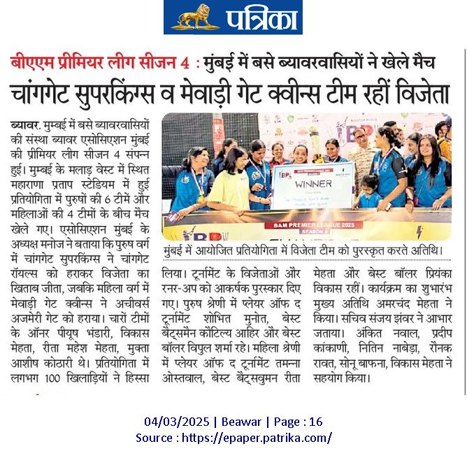 - 1. BAM Premier League 2025: A Thrilling 4th Edition concludes on 2nd March, 2025 in Malad West.